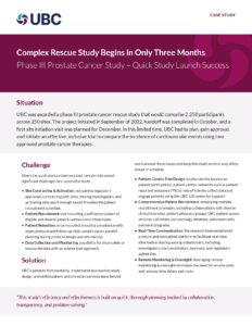 UBC took over a Phase III prostate cancer study with a first site initiation visit planned three months later. Within this time, UBC’s Evidence Development team needed to design and begin standing up this trial without sacrificing quality post-launch which would result in slowdowns.